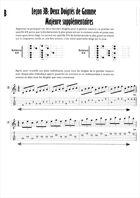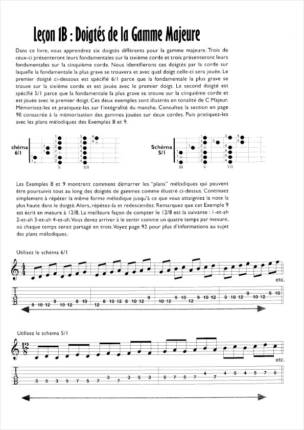 Exemples de doigtés de guitare pour la gamme majeure.
