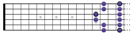 Continuons avec une rythmique classique. Les trois accords sont B, E et F# . Les petites phrases qui les entourent sont tirées de la gamme de si mineure pentatonique.